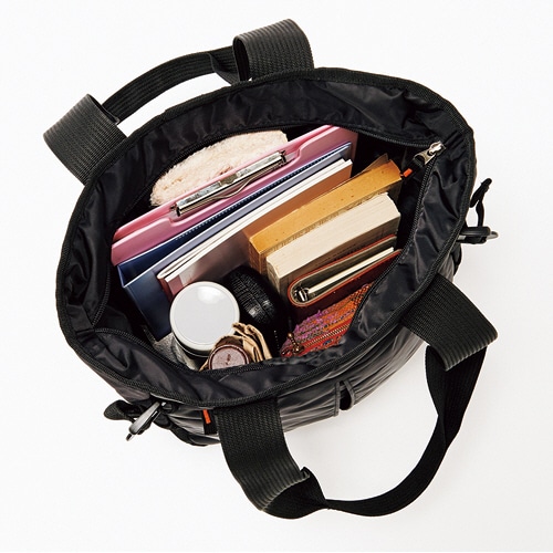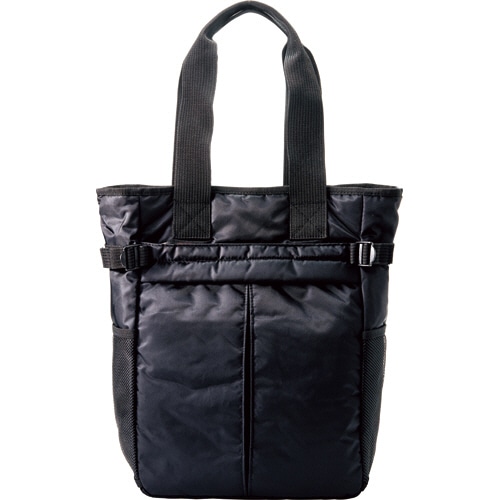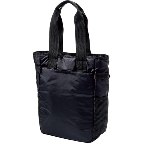| 商品仕様 | ●種類/トートバッグ ●寸法/W300×D145×H390mm ●重量/約470g ●色/黒 ●材質/ナイロン ●その他仕様/●持ち手:長さ26.5cm ●ポケット:[内側]オープンポケット2個、[外側]ファスナーポケット2個・メッシュポケット2個・面ファスナーポケット1個 ●底板あり |