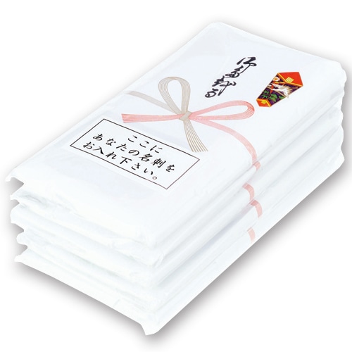 | 商品仕様 | ●種類/粗品タオル ●色/ホワイト ●寸法/約34×84cm ●重量/約62.5(200)g(匁) ●材質/綿100% ●生産国/中国 ●その他仕様/●セット内容:タオル×5枚、のし紙×5枚、袋×5枚(名刺ポケット付) ●個包装 |