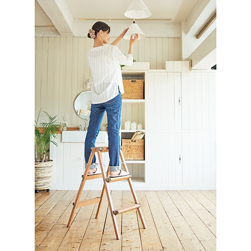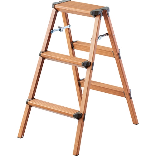 ●インテリアにもなじみやすい、木目柄がおしゃれな脚立です。アルミ製で軽く、持ち運びも楽々。折りたたむとコンパクトに収納できます。安全性基準をクリアしたSGマーク付きの商品で安心!