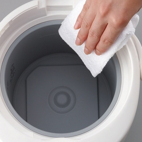 ●フィルター不要、フッ素加工を施した広口容器でお手入れが簡単です。