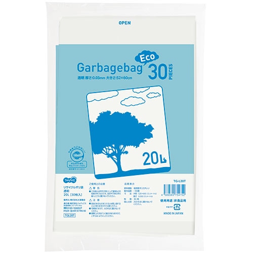 TANOSEE リサイクルポリ袋 透明 20L 1パック(30枚)