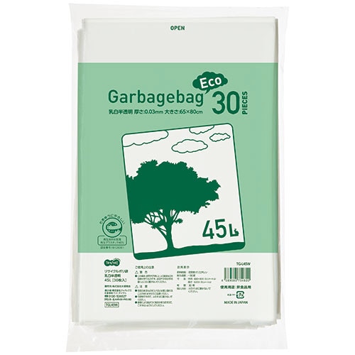TANOSEE リサイクルポリ袋 乳白半透明 45L 1パック(30枚)