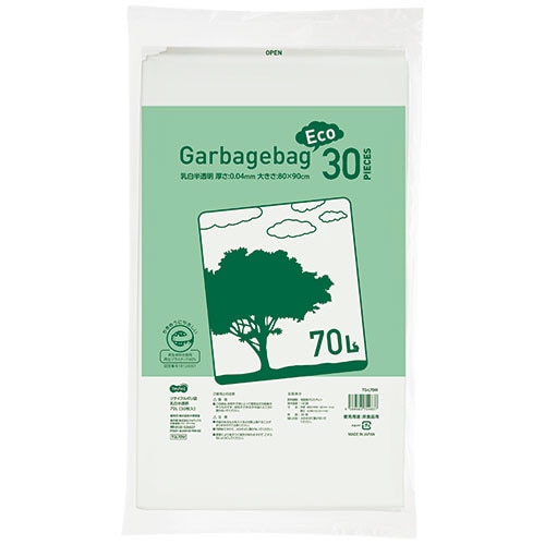 TANOSEE リサイクルポリ袋 乳白半透明 70L 1パック(30枚)
