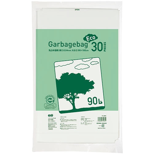 TANOSEE リサイクルポリ袋 乳白半透明 90L 1パック(30枚)