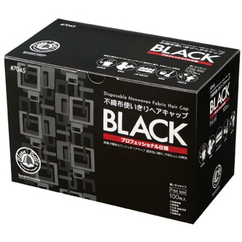 川西工業 不織布使いきりヘアキャップ ブラック 7045 1箱(100枚)
