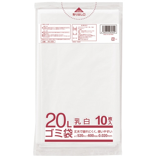 クラフトマン 業務用乳白半透明 メタロセン配合厚手ゴミ袋 20L HK-099 1パック(10枚)