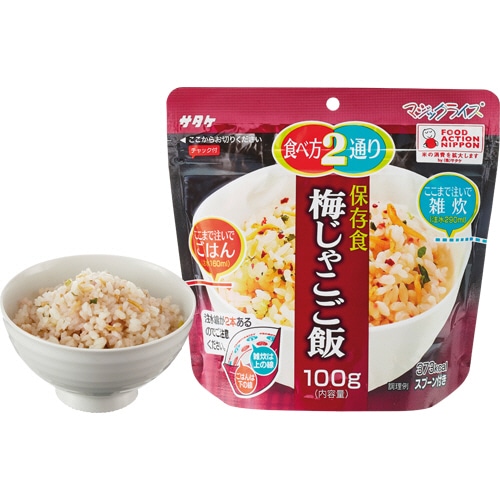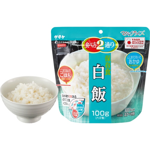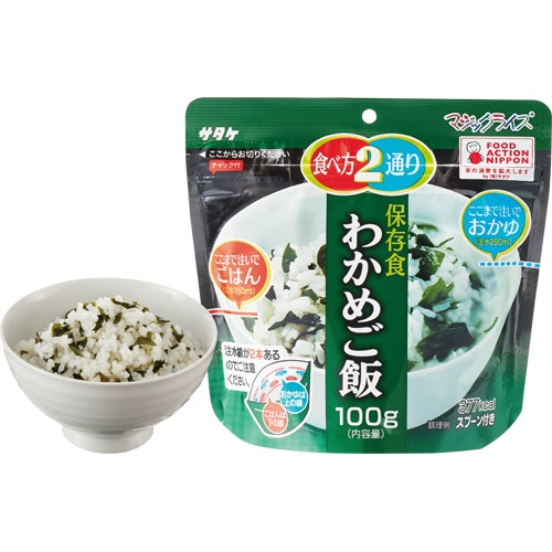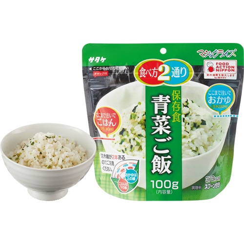 | 商品仕様 | ●内容量/100g ●賞味期限/5年 ●重量/2.5kg ●その他仕様/●セット内容:白飯、青菜ご飯、梅じゃこご飯、わかめご飯(各5袋、計20袋) ●外箱サイズ:214×360×H175mm ●備考/※重量は外箱重量。 ※内容量は1食あたり |