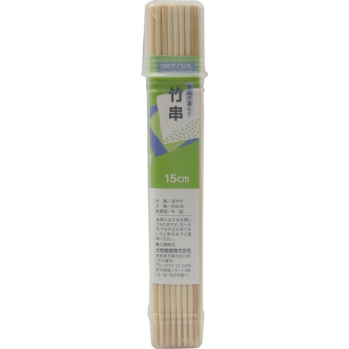 商品仕様 | ●種類/串 ●全長/約150mm ●材質/竹 ●生産国/中国 ●その他仕様/●約80本入 |