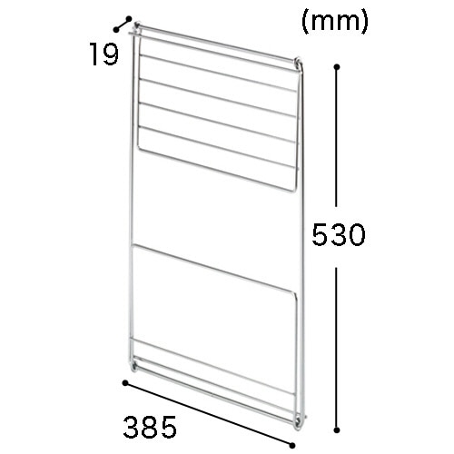 | 商品仕様 | ●寸法/W約385×D約220×H約490mm ●折りたたみ時寸法/W385×D19×H530mm ●干す量の目安/タオル6枚掛 ●重量/約1kg ●材質/スチール丸鋼にクロームメッキ ●生産国/日本 |