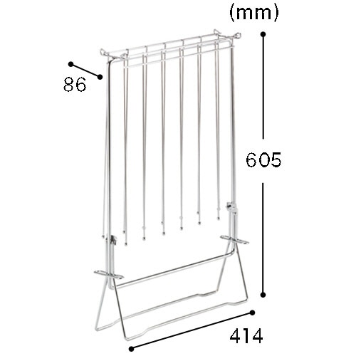 | 商品仕様 | ●寸法/W約732×D約414×H約589mm ●折りたたみ時寸法/W86×D414×H605mm ●干す量の目安/タオル14枚掛 ●重量/約2.1kg ●材質/スチール丸鋼にクロームメッキ ●生産国/中国 |