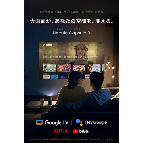アンカージャパン Google TV搭載モバイルプロジェクター NEBULA Capsule 3 Full HD 200ANSIルーメン ブラック D2425N