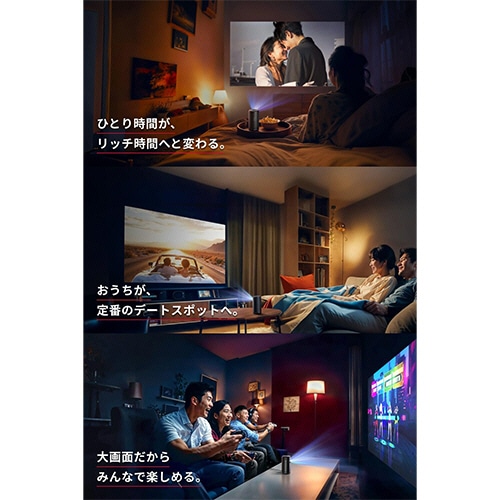 ●500mL缶以下のサイズというコンパクトさからは想像できない、最大120型の大画面投影が可能。