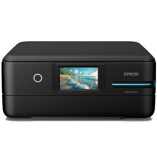 ●美しくなじむスタイリッシュなデザイン。エコタンク搭載の「EW-M757」。本体色はブラックです。