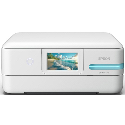 ●美しくなじむスタイリッシュなデザイン。エコタンク搭載の「EW-M757」。本体色はホワイトです。