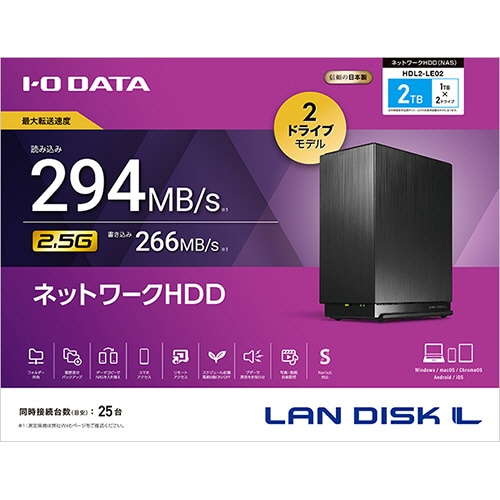 アイオーデータ LAN DISK L 2.5GbE対応 2ドライブ ネットワークHDD 2TB HDL2-LE02 1台