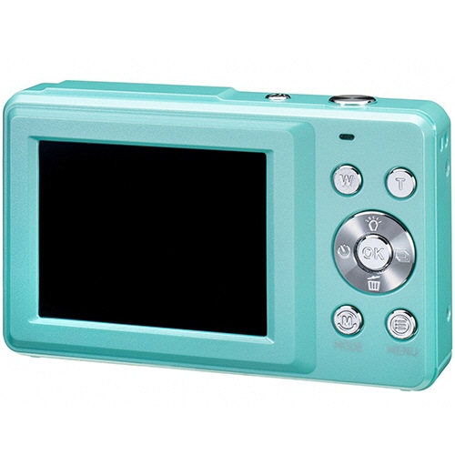 ●いつもポケットに入れて、日常の景色を気軽に撮れる軽量コンパクトな500万画素デジタルカメラ。カラーはグリーンです。