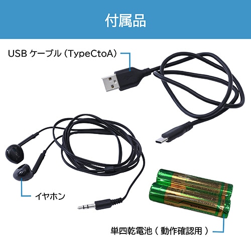 | 商品仕様 | ●寸法/W約38×D19×H110mm ●質量/約40g ●内蔵メモリー/8GB ●音声記録形式/WAV/MP3 ●録音時間/最長約580時間 ●対応メモリー/microSD/microSDHC ●電源/単4形アルカリ乾電池×2本 ●電池持続時間(録音/再生)/約21時間(録音) ●付属品/Type-C USBケーブル、単4形アルカリ乾電池×2本 ●備考/※重量は本体のみ。 ※録音時間は内蔵8GB使用時、MP3 ビットレート32kbpsの場合。 ※電池持続時間は新品電池使用時。 |