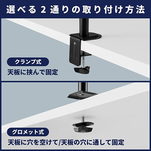 | 商品仕様 | ●寸法/W約117×D478×H645mm ●重量/約2.2kg ●その他仕様/●取付モニター数:1台 ●軸:2軸 ●耐荷重:9kg ●可動範囲:[モニター傾斜]上45°/下45°、[関節軸回転]左90°/右90°、[ブラケット回転]360° ●VESA規格:100mm/75mm ●取り付け可能天板:[クランプ式]幅105mm以上・奥行105mm以上・厚さ10~85mm、[グロメット式]幅105mm以上・奥行105mm以上・厚さ10~40mm ●主な材質:スチール、EVA、プラスチック |