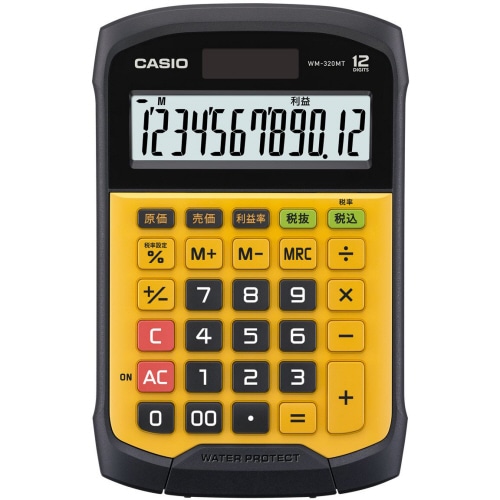 カシオ 防水・防塵電卓 12桁 ミニジャストタイプ イエロー WM-320MT-N 1台