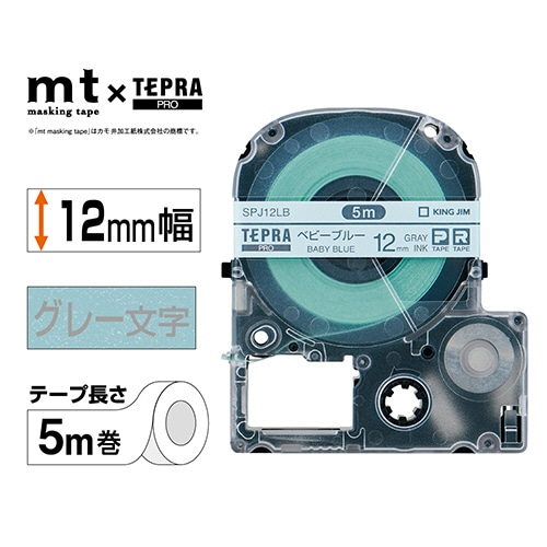 キングジム テプラ PRO テープカートリッジ マスキングテープ mt ラベル 12mm ベビーブルー/グレー文字 SPJ12LB 1個