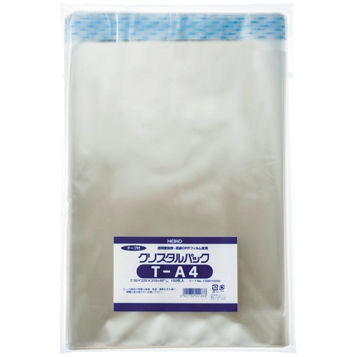 シモジマ HEIKO クリスタルパック T(テープ付) T-A4 0.03×225×310+40mm #6743200 1パック(100枚)