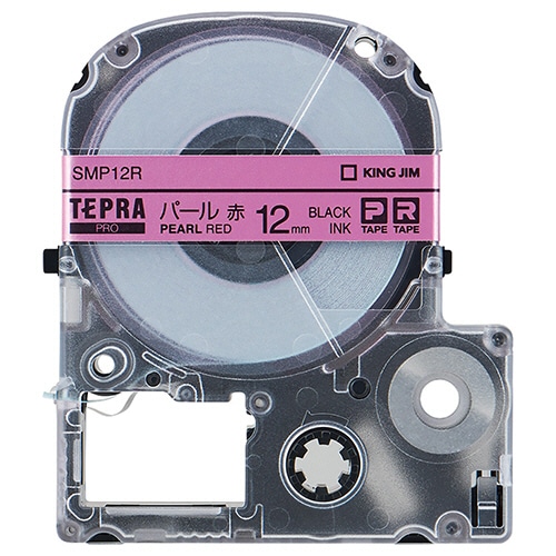 キングジム テプラ PRO テープカートリッジ カラーラベル(パール) 12mm 赤/黒文字 SMP12R 1個