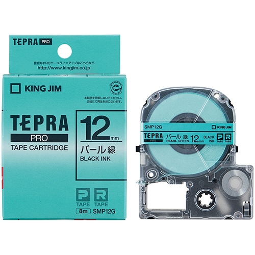 キングジム テプラ PRO テープカートリッジ カラーラベル(パール) 12mm 緑/黒文字 SMP12G 1個