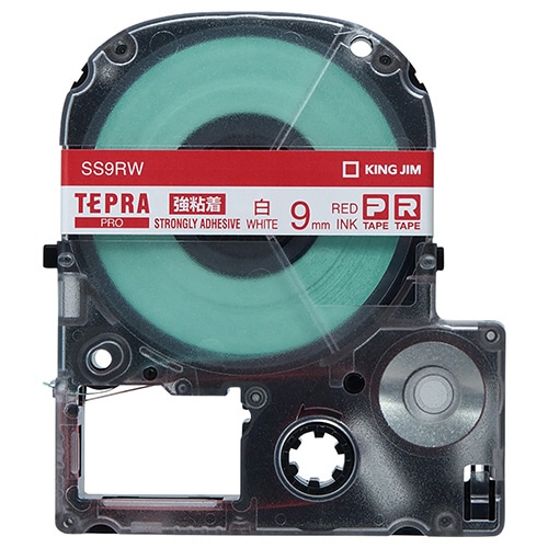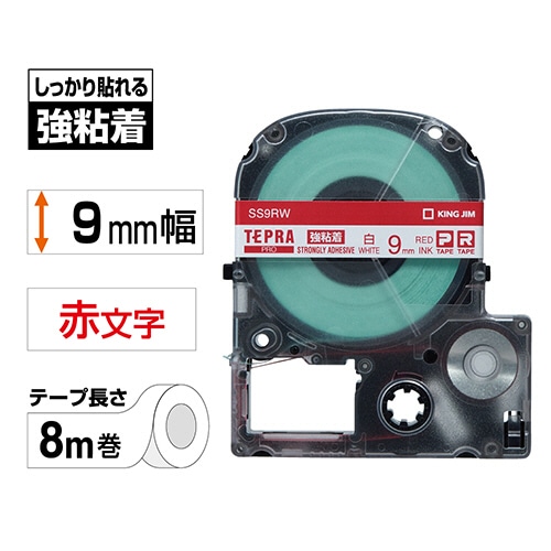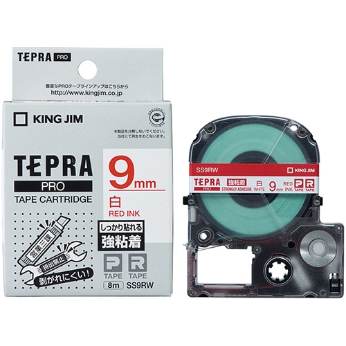 キングジム テプラ PRO テープカートリッジ 強粘着 9mm 白/赤文字 SS9RW 1個