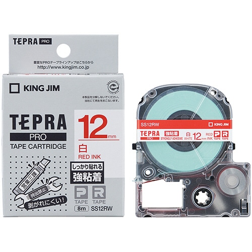 キングジム テプラ PRO テープカートリッジ 強粘着 12mm 白/赤文字 SS12RW 1個