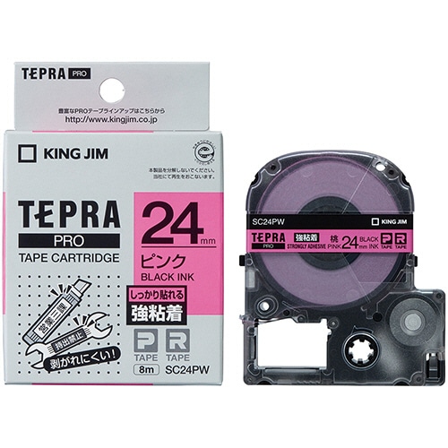 キングジム テプラ PRO テープカートリッジ 強粘着 24mm ピンク/黒文字 SC24PW 1個