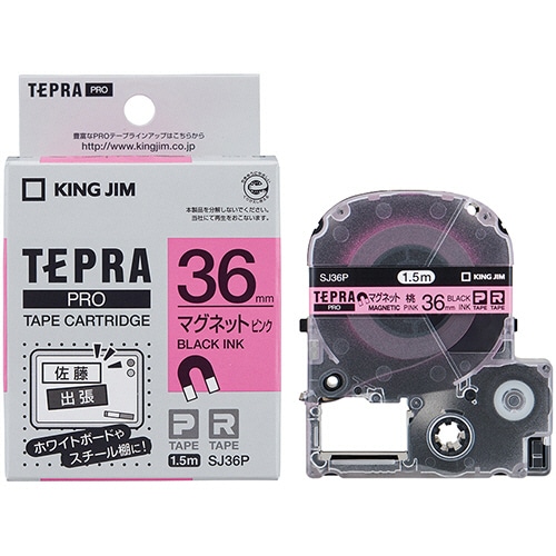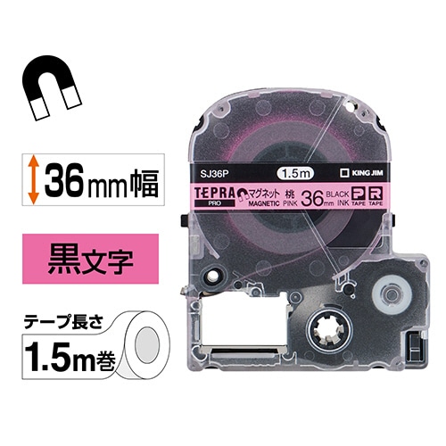 キングジム テプラ PRO テープカートリッジ マグネットテープ 36mm ピンク/黒文字 SJ36P 1個