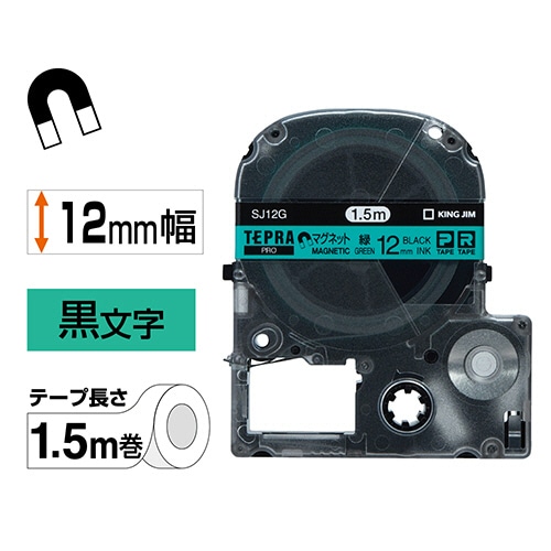 キングジム テプラ PRO テープカートリッジ マグネットテープ 12mm 緑/黒文字 SJ12G 1個
