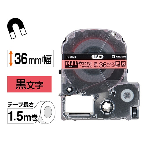 キングジム テプラ PRO テープカートリッジ マグネットテープ 36mm 赤/黒文字 SJ36R 1個