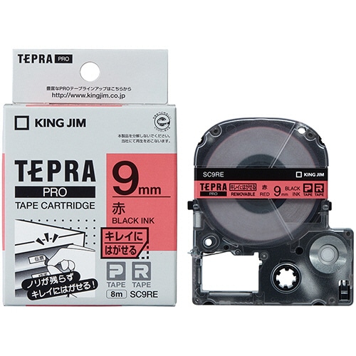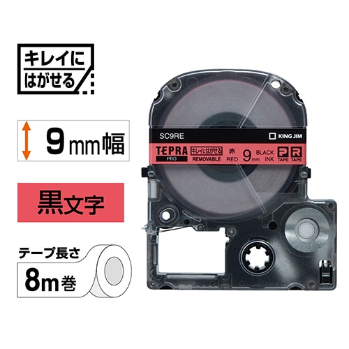 キングジム テプラ PRO テープカートリッジ キレイにはがせるラベル 9mm 赤/黒文字 SC9RE 1個