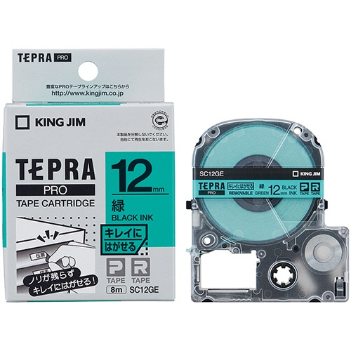 キングジム テプラ PRO テープカートリッジ キレイにはがせるラベル 12mm 緑/黒文字 SC12GE 1個