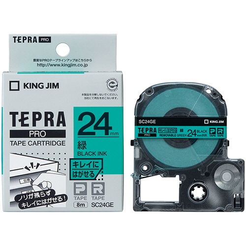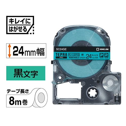 キングジム テプラ PRO テープカートリッジ キレイにはがせるラベル 24mm 緑/黒文字 SC24GE 1個