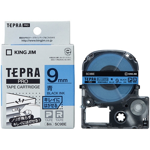キングジム テプラ PRO テープカートリッジ キレイにはがせるラベル 9mm 青/黒文字 SC9BE 1個