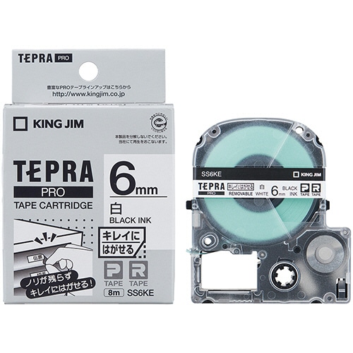 キングジム テプラ PRO テープカートリッジ キレイにはがせるラベル 6mm 白/黒文字 SS6KE 1個