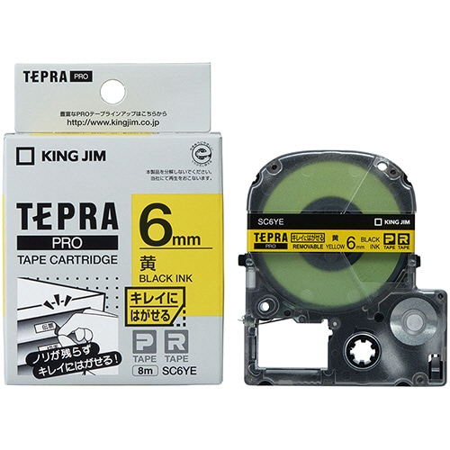 キングジム テプラ PRO テープカートリッジ キレイにはがせるラベル 6mm 黄/黒文字 SC6YE 1個