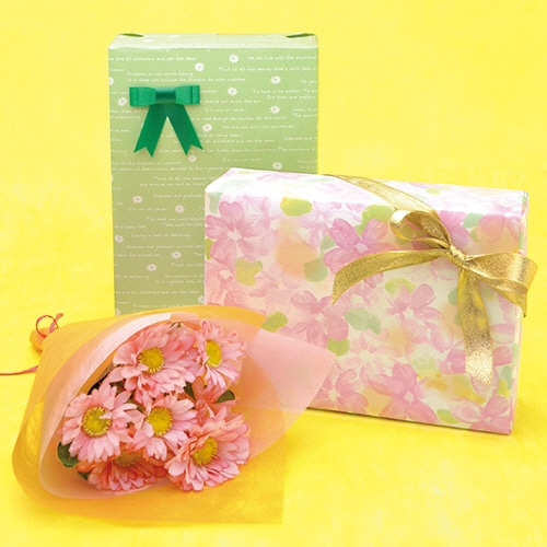 ●気持ちを添えて贈り物を包む。グリーン地に花柄です。