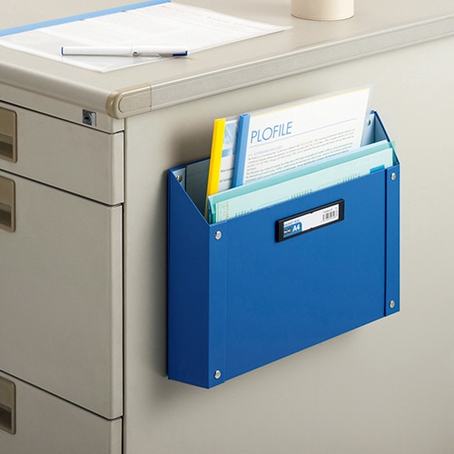 A4書類がヨコに入る、丈夫な貼り表紙素材のマグネットボックス。