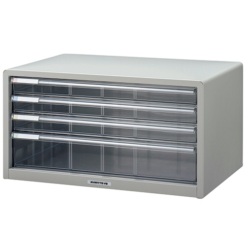 | 商品仕様 | ●サイズ/A3ヨコ ●段数仕様/浅3段、深1段 ●外寸/W494×D335×H260mm ●引出内寸/浅型:W453×D311×H36mm、深型:W453×D311×H80mm ●色/ニューグレー ●材質/本体:スチール(粉体焼付塗装)、引出し:透明スチロール樹脂、引出し段板:ポリプロピレン ●重量/4.8kg ●付属品/タイトルシール付 |