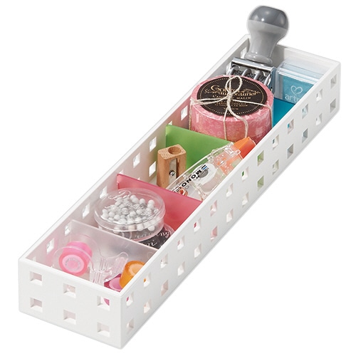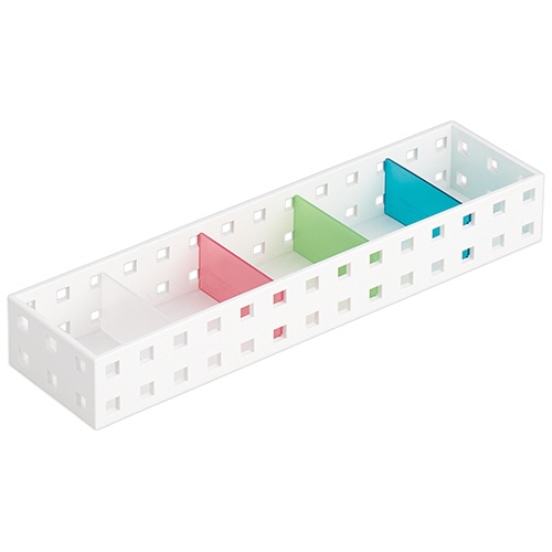 | 商品仕様 | ●色/ホワイト/ミックス ●外寸/W70×D280×H43mm ●材質/本体:ABS樹脂 仕切り版:スチロール樹脂 ●重量/約166g ●付属品/仕切板4枚 |