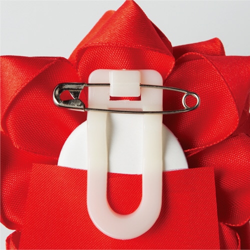 | 商品仕様 | ●色/赤 ●材質/本体:ポリエステル、花芯:綿・PP、クリップ:PP、安全ピン:鉄 ●その他仕様/●仕様:バラ・中 ●サイズ:花直径90×全長205mm |