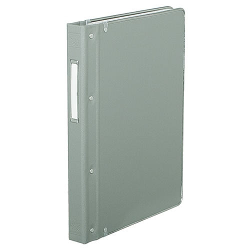 商品仕様 | ●サイズ/B5タテ ●寸法/W225×D52×H282mm ●色/グレー ●最大収容枚数/200枚 ●穴数/26穴 ●材質/表紙:PP貼り(芯材:古紙パルプ配合)・ふち金付、W型とじ具 ●重量/960g |