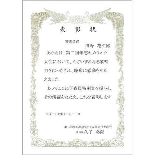 レクリエーションの時の表彰状や、感謝状などに便利です。