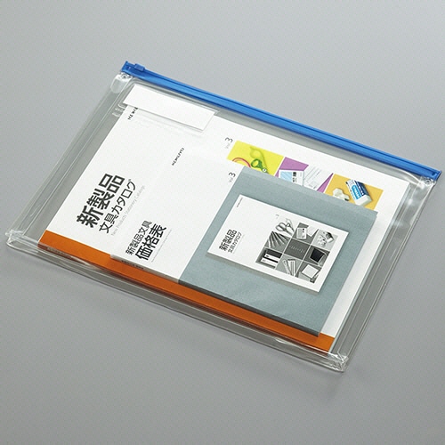 収容書類の抜け落ち・紛失を防ぐチャック付きのソフトクリヤーケース。