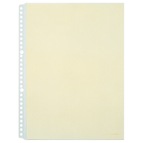光の反射を抑えるエンボス加工。台紙はドット罫入りで資料の貼りこみも容易。