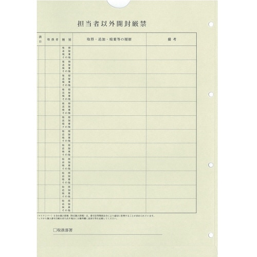 ●封筒には利用記録を記載できる管理表を設けてありますので、個人番号の取得、利用、廃棄などの番号法の求める利用記録を記載することができます。