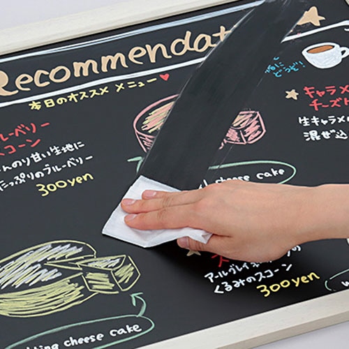 | 商品仕様 | ●サイズ/A2 ●寸法/幅600×奥行12×高さ420mm ●ボード面サイズ/幅550×高さ370mm ●対応筆記具/チョーク、ボードマーカー ●材質/ボード面:スチール(つや消し仕上げ)、フレーム:ラバーウッド、裏面:ファイバーボード ●重量/1210g ●付属品/蛍光ボードマーカー(中字/ホワイト)1本、マグネット(直径20mm)2個、吊下用麻紐(50cm)1本、吊下げ用金具2個、ビス2個 ●その他仕様/●イーゼル対応 ●吊り下げ ●マグネット可 ●備考/※板面は特殊加工の為、レイメイ藤井「蛍光ボードマーカー」をご使用ください。 |